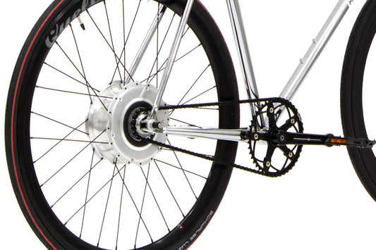 With our love for a clean looking, vintage, steel framed bike, we never imagined that we would ever bring an e-Quella to the market. The truth is we don't like huge, heavy e-bikes with massive frames. We like bikes that look like ours! Our partnership with ZEHUS enabled us to develop one of the lightest e-bikes on the road with a 250watt motor and battery built into a fantastic-looking rear hub. No cables, just a remote app that links to your phone with all your ride data, 3 power modes and a built-in rear wheel immobiliser feature. It's a high-tech solution in a vintage bike that will turn heads wherever you go.