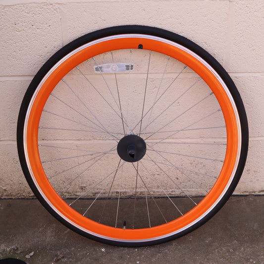 Used Orange 40mm Deep V - 25 Black Bicycle Front Wheel (WHQ001)