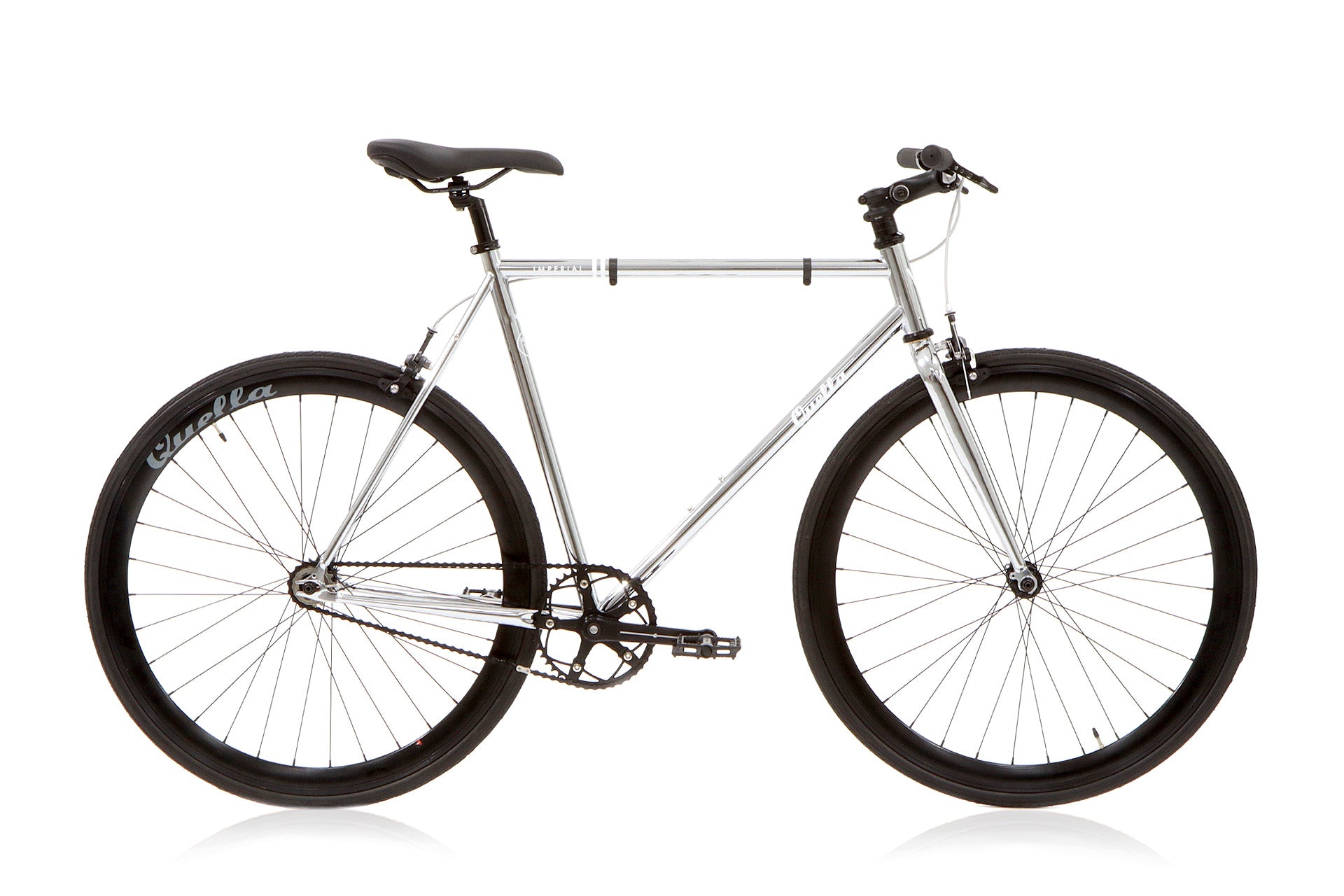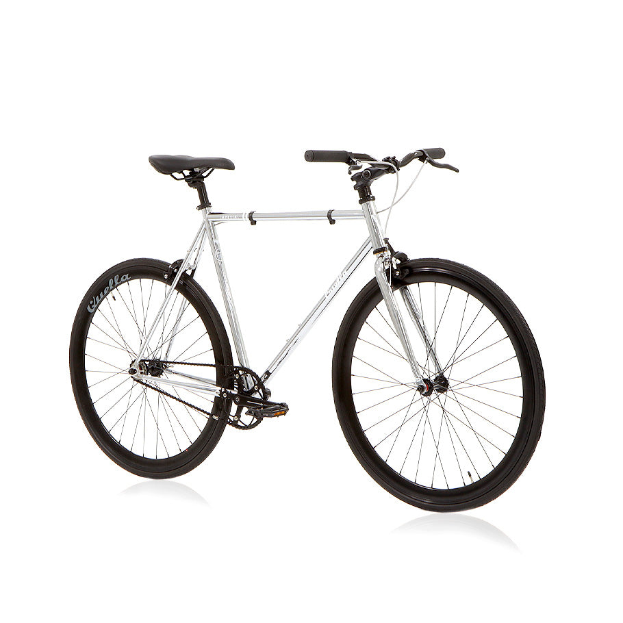 The Imperial is the same high specification 4130 chromoly frame as the Varsity but the frame is electroplated in chrome for a unique finish. Contrasting black wheels & components complete the look that will set you apart from the crowd. This quick, low maintenance bike is the ultimate headturner!