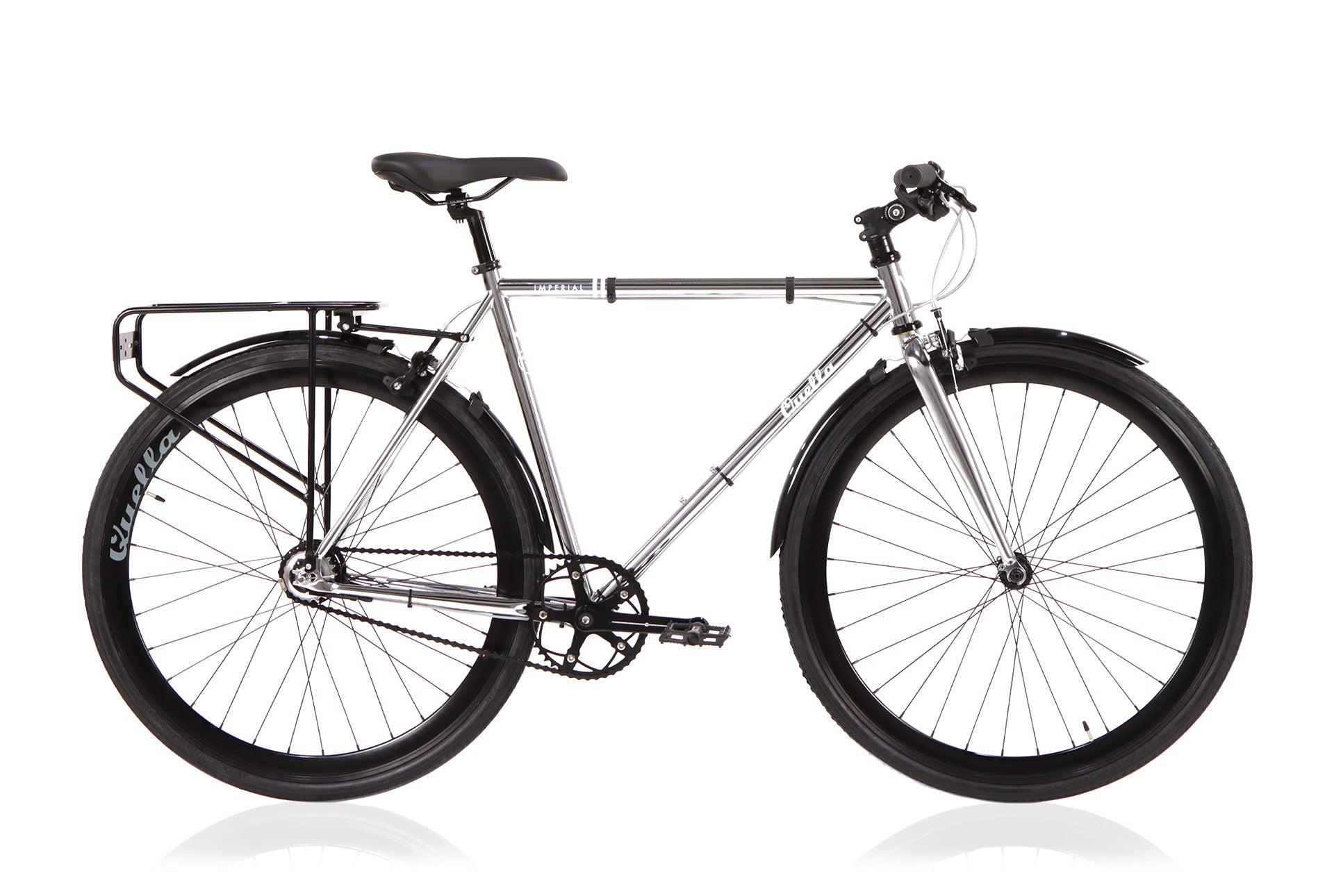 The Imperial is the same high specification 4130 chromoly frame as the Varsity but the frame is electroplated in chrome for a unique finish. Contrasting black wheels & components complete the look that will set you apart from the crowd. This quick, low maintenance bike is the ultimate headturner!