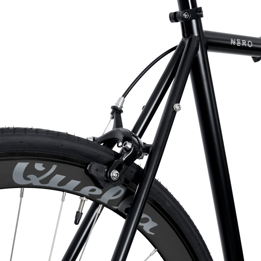 Our Nero range is the original and best-selling Quella model dependable, sturdy, simple, and affordable. Built around a durable diamond-form frame, the high-tensile steel absorbs the bumps and lumps of city streets, offering a smooth and comfortable ride. With simple componentry, maintenance is minimal just the occasional wash and a touch of oil.
